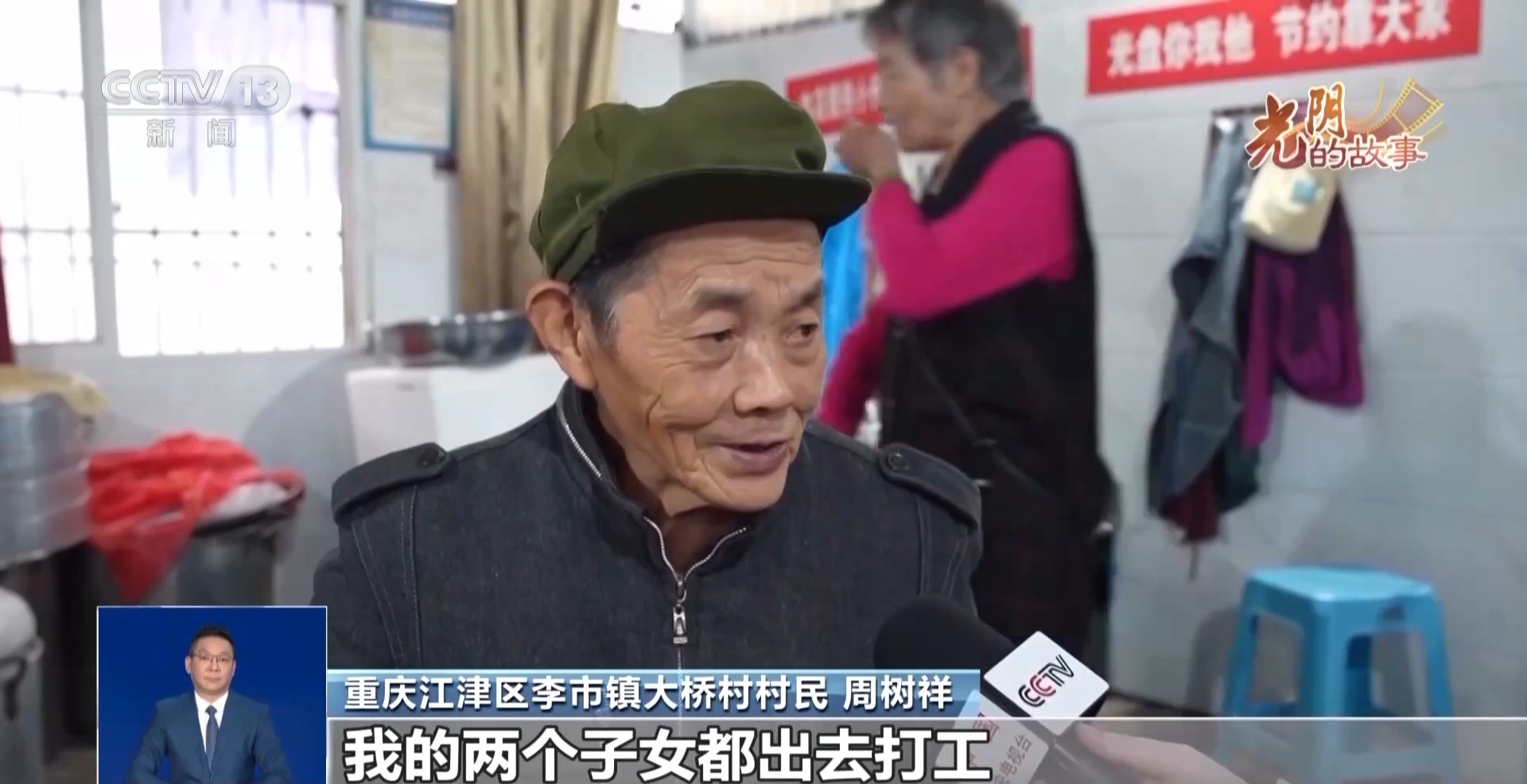 重庆江津区李市镇大桥村村民 周树祥:我82岁了,我的两个子女都出去打工,我的爱人也去世了,所以我就在她这里吃饭,吃了四年了。